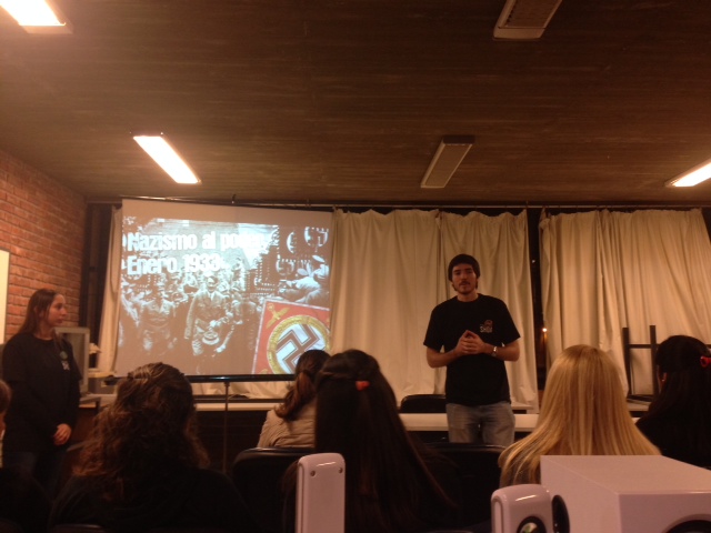 KAREN: Así es. Cuando empezamos con este proyecto inclusive tuvimos reuniones con psicólogos para ver cuál era la mejor edad para tratar estos temas, porque tratamos de ser muy profesionales. Tuvimos una comisión de profesionales que evaluamos cuál era la mejor edad porque sabíamos que era muy difícil llegar a todos los liceos. Es el año en el que están dando la Segunda Guerra Mundial en el programa, y se entendió que a esa edad se podían discutir ciertos temas y problemáticas.